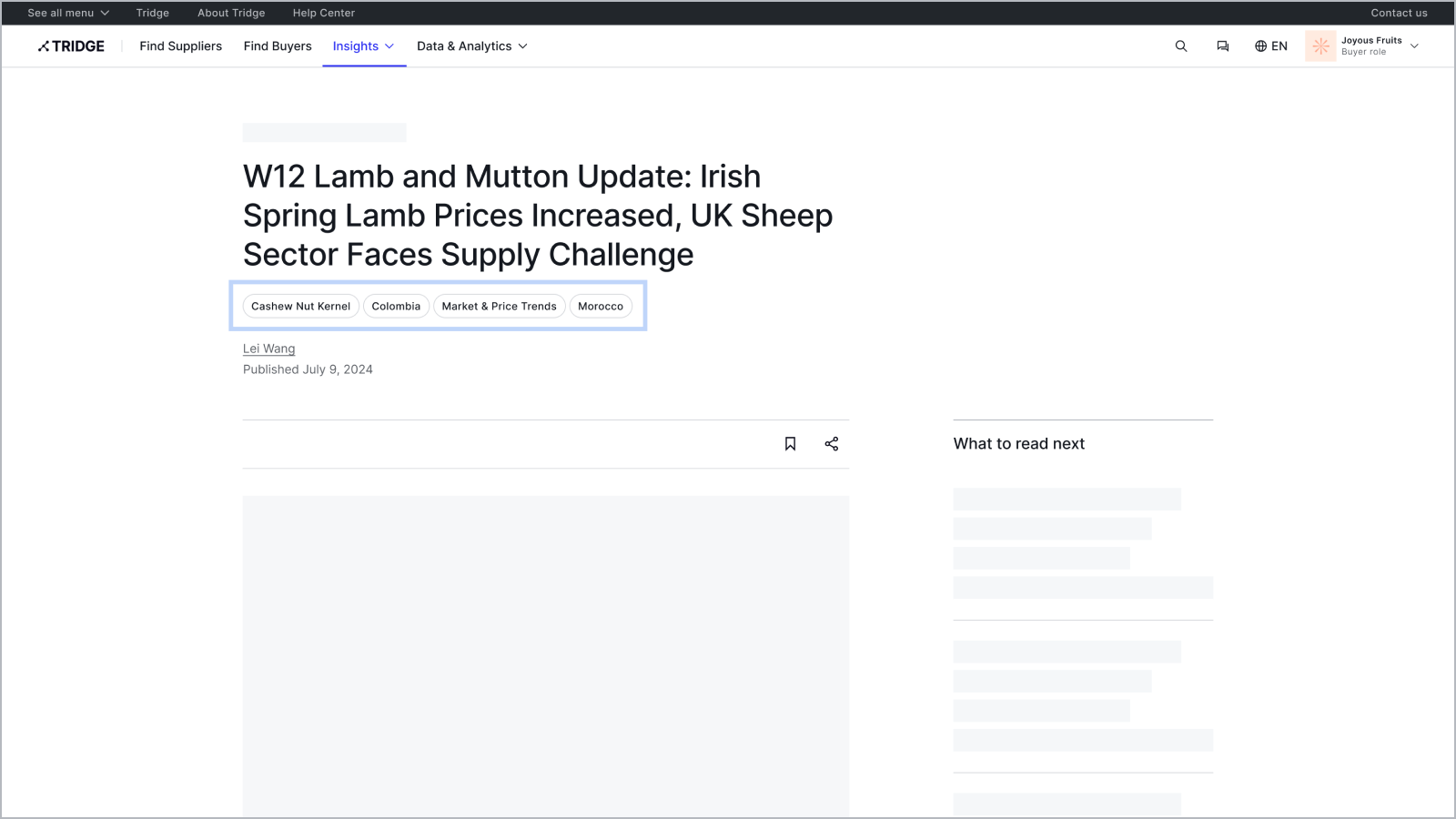 If you want to read other contents about the same products, categories or countries with the current viewing content, click the tag at the top of the content. You can view the list of contents related to the tag across the overall content type.