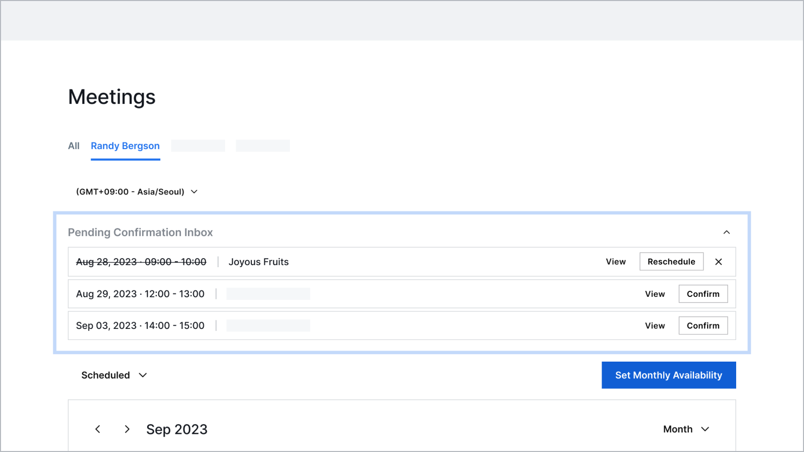 Click on the meetings on your calendar to view more details. You can also request to reschedule, cancel, or join meetings from here.