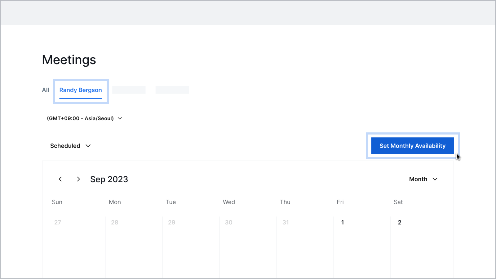 All time slots are marked available by default, but you may choose to update your meeting availability to receive requests only on specific times.