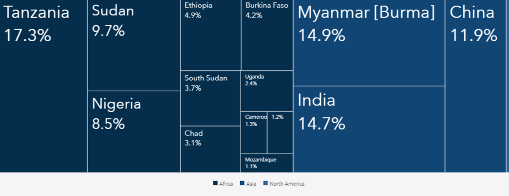 Featured: the treemap of major producers of sesame seeds (source: Tridge)