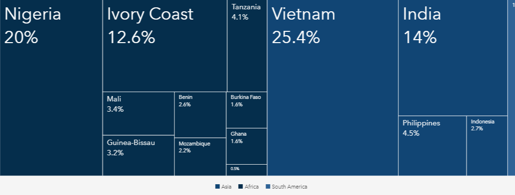 India and Vietnam are two biggest importers of raw cashews by import value, USD (source: Tridge)