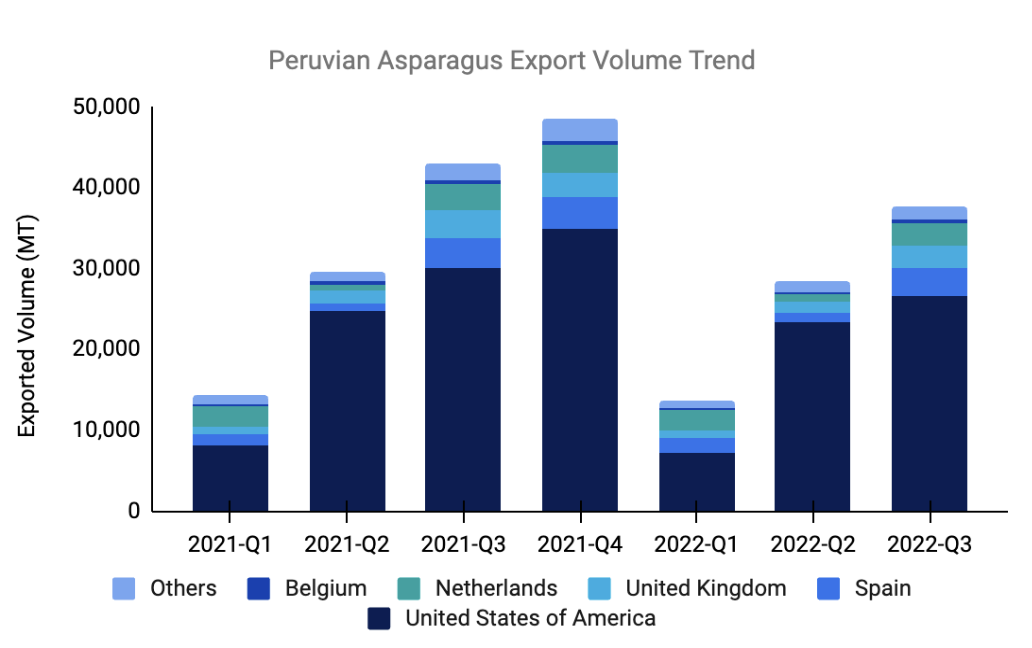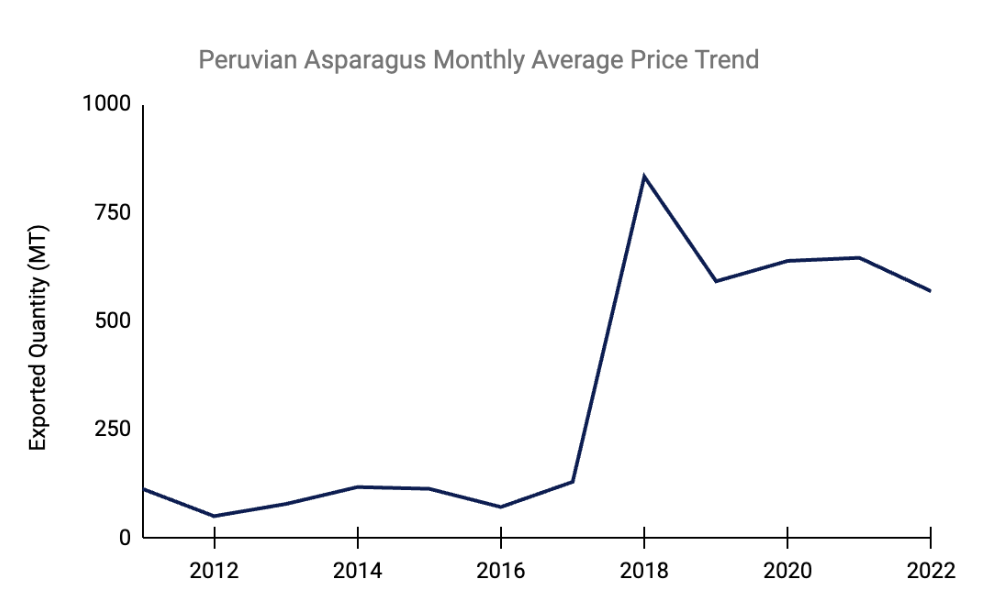 Moreover, the decline in international asparagus prices in 2022, driven by heightened production in Mexico and Europe, prompted Peruvian producers to reconsider asparagus cultivation. However, unusual weather patterns in 2023 disrupted the capacity of both Mexico and Peru to flood the market, leading to sustained high prices.