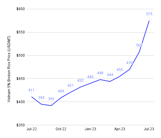 Vietnam 5% Broken Rice Price Trend (July-22 to July-23)