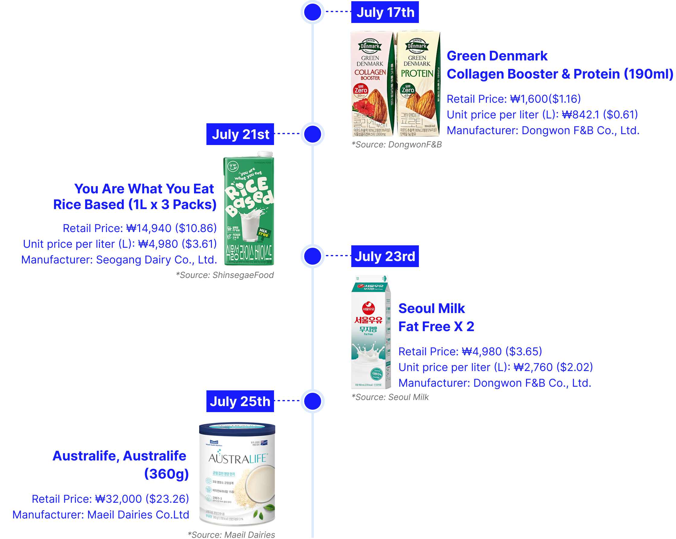 Timeline of Milk Alternatives Launched in Jul-24 (W3 - W4)
