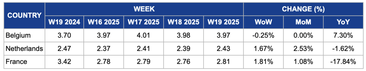 Driven by tight supply conditions, Belgium’s powdered milk price in W19 was USD 3.97/kg, showing a 0.25%week-on-week (WoW) decline and no month-on-month (MoM) change, but a notable YoY increase of 7.30%. Persistent high input costs, labor shortages, and an aging farming population continue to limit production expansion, while strong global demand—especially from emerging markets—sustains upward pressure. Despite slight weekly stabilization, structural constraints in supply and robust international interest are maintaining elevated price levels.