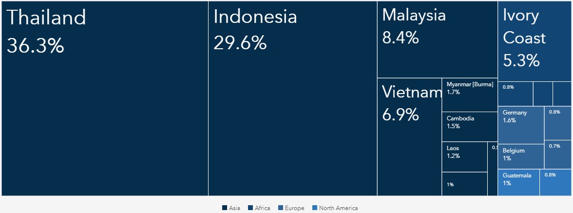 According to Tridge, Thailand, Indonesia, and Malaysia are main exporters of natural rubber, three countries taking up almost 70% of world exports. Total export values of natural rubber recorded USD 14 billion in 2016.